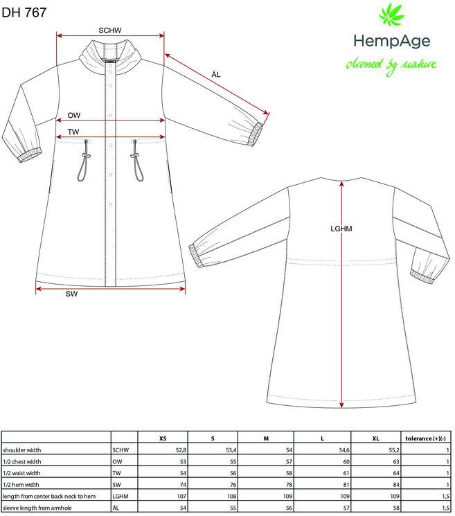 „Alina Hanfmantel“ – aus 22% Hanf , 78% Bio-Baumwolle 230g/m2.