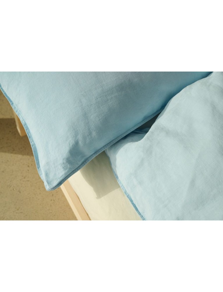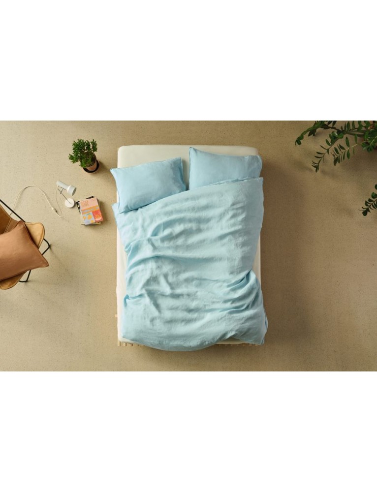 Erfrischend leicht wie ein klarer Morgenhimmel – die Lavie Bettwäsche Linus in Sky bringt natürliche Ruhe und zeitlose Eleganz ins Schlafzimmer. Gefertigt aus hochwertigem, vorgewaschenem reinsten Leinen, fühlt sich diese Bettwäsche angenehm weich auf der Haut an und reguliert Temperatur und Feuchtigkeit auf natürliche Weise.