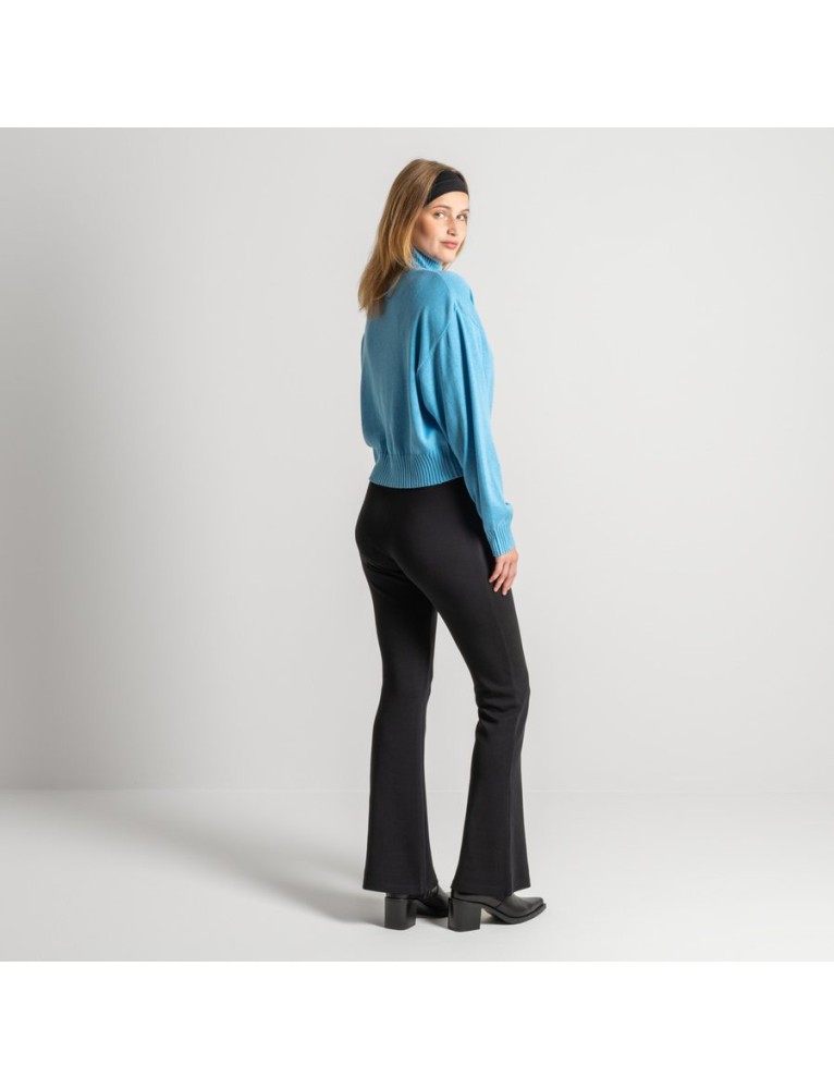 Ein angedeuteter Reissverschluss vorne setzt einen feinen, zeitgemässen Akzent und rundet das klare Design harmonisch ab. Vegan und verantwortungsvoll produziert, ist die EVOLET Schlaghose ein Lieblingsstück für alle, die Komfort, Stil und bewusstes Einkaufen schätzen.