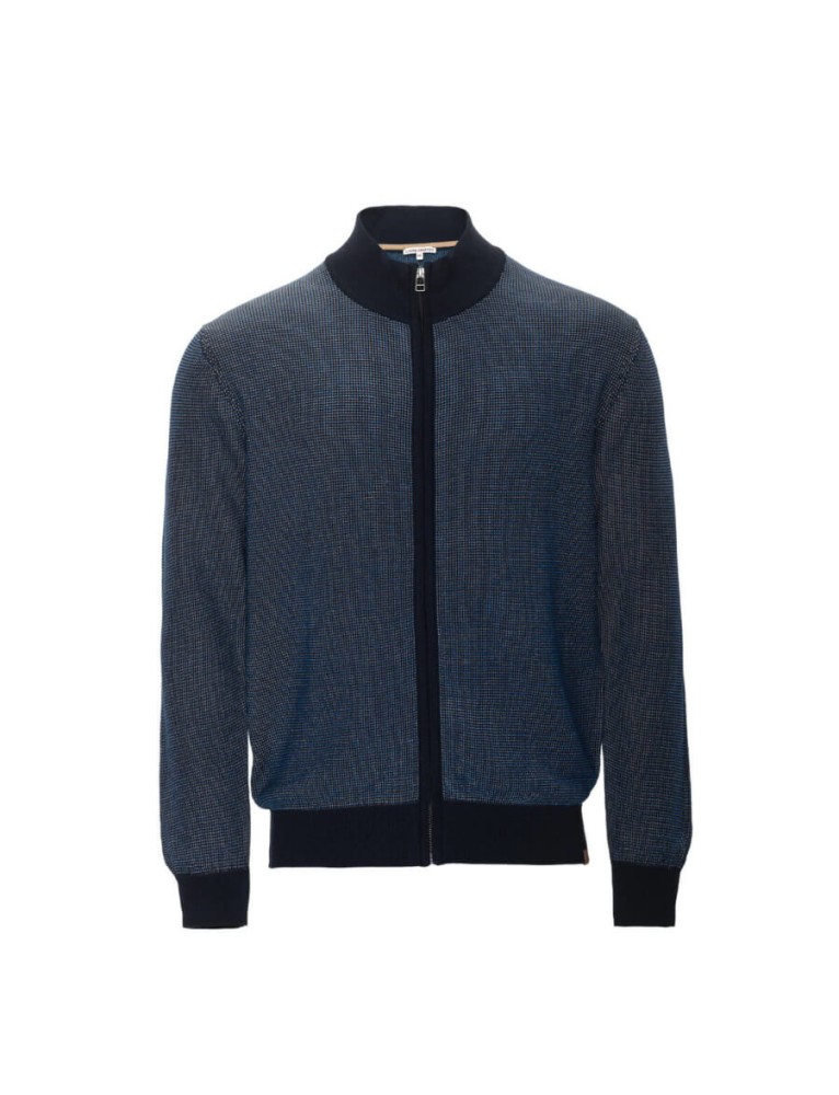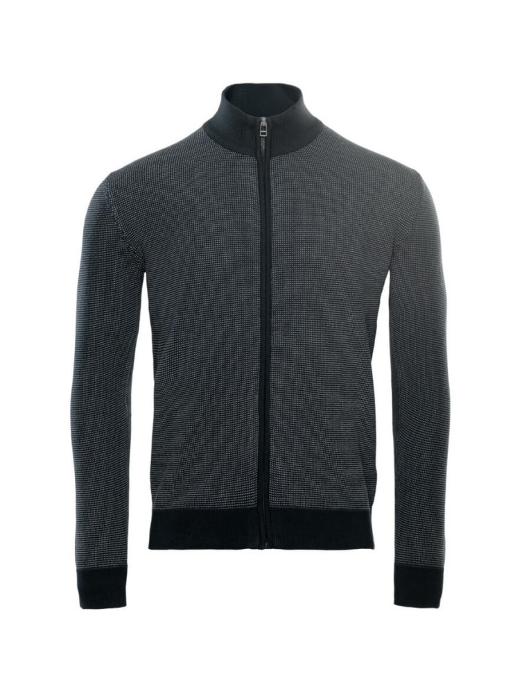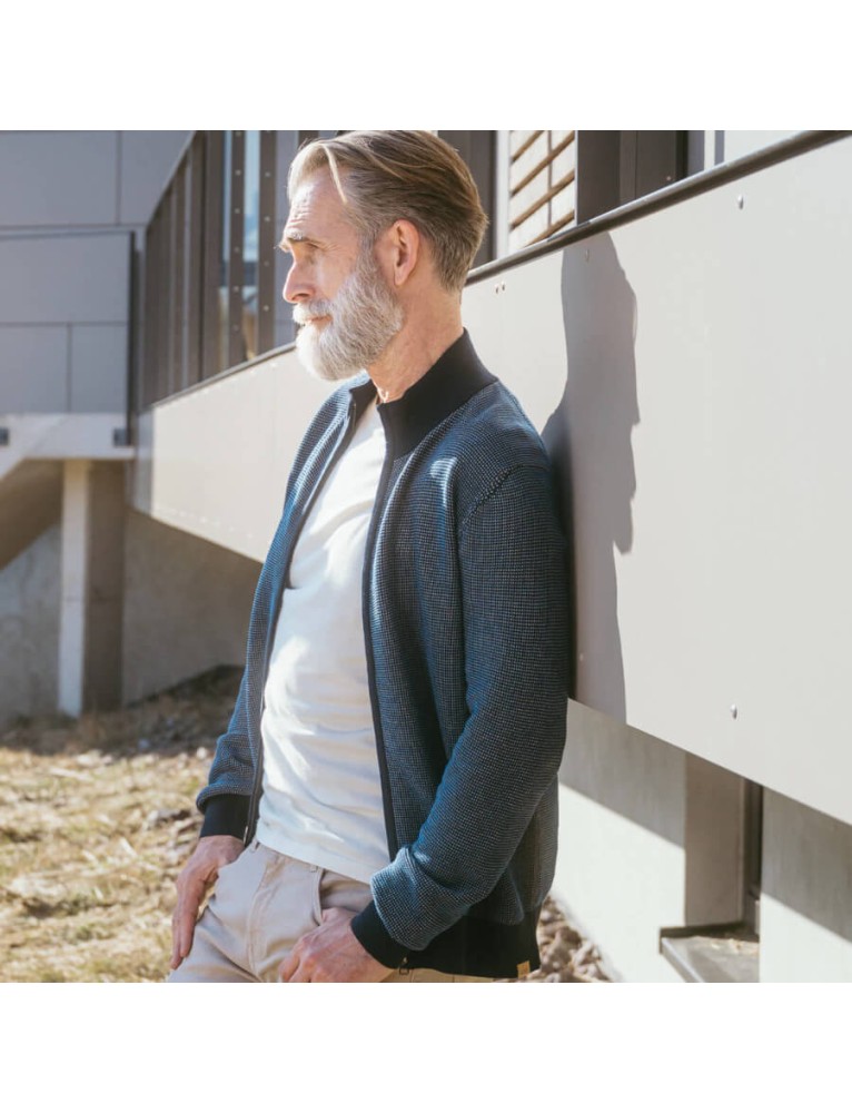 Die SPENCER Strickjacke vereint zeitlosen Stil, hohen Komfort und nachhaltige Materialien – perfekt für Alltag, Büro und Freizeit. Das zweifarbige Allover-Strickmuster verleiht dem Cardigan einen modernen, maskulinen Look, während der Regular-Fit mit 1x1-Rippkragen und Rippbündchen für eine optimale Passform sorgt.